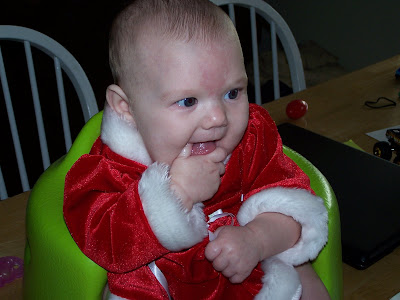 She smiles and talks all the time. She is so happy that sometimes I wonder if it's the same baby! While the thought of the Christmas "Tour of Texas" doesn't thrill me, I do know that we're going to have a wonderful time this year. Four more days and counting!